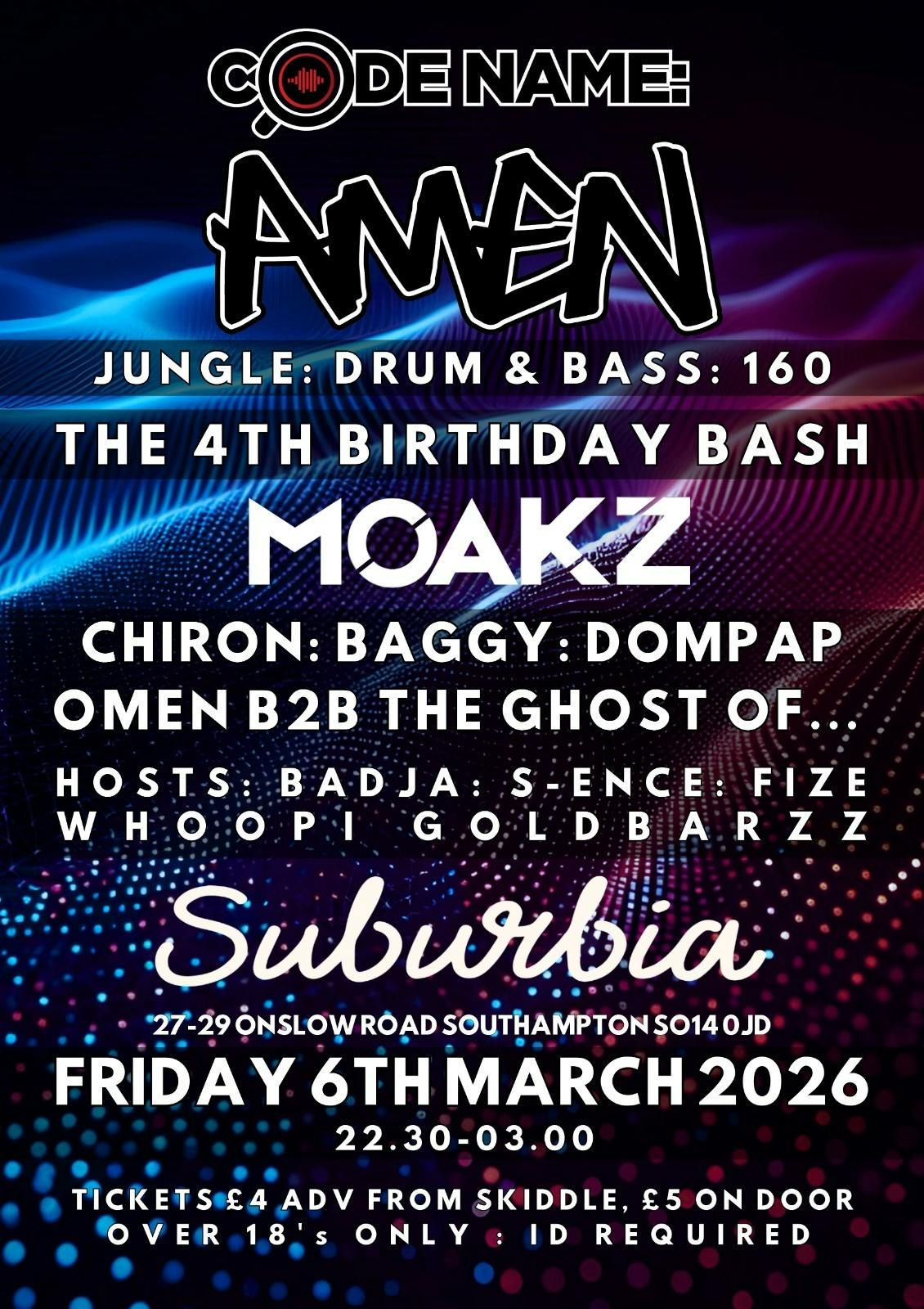 Codename: Amen are back for our 1st event of the year on Friday 6 March at Suburbia in Southampton. Come and celebrate our 4th birthday with all your Codename regulars including: