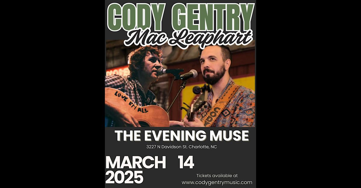 Born and raised in Upstate SC, the first song Cody Gentry ever learned the lyrics to was "Please Don't Bury Me" by John Prine. From there, Cody began writing and performing his own songs influenced by the towering country and folk performers of times past such as Guy Clark, Ted Hawkins, and Townes Van Zandt. His affection for history through storytelling along with the writings of Flannery O'Connor, David Joy, and Larry Brown have blended with his unique sound to create a wholly original illustration of true Americana. This sound was captured on Cody's breakout album, Blue Ridge Gold, which received acclaim upon its release in May 2024 . While touring on this album, Cody has played alongside a vast array of musical genres. This has only expanded his appetite for inspiration, while also amplifying his affection to write and perform more well-written Americana/Country/Rock and Roll songs. This creates a live show that is both intimate and energetic. It is Country music with meaningful lyrics and Rock and Roll without pretension.