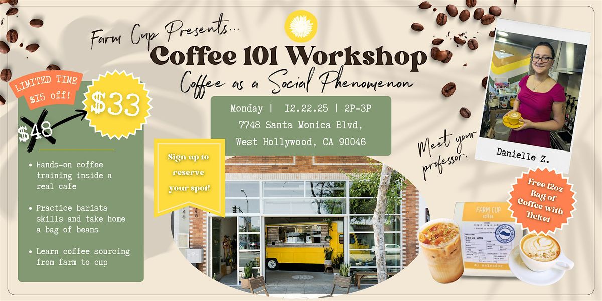 Join our workshop to learn the basics of coffee from farm to cup with our in house coffee educator. In this workshop we'll learn about the coffee growing world, the social impacts of coffee from it's origins on the African continent to the Global social phemenonam that it is today.