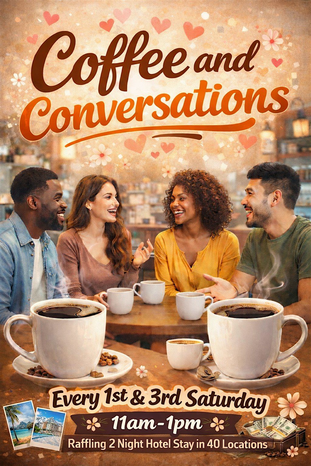 We're back again for another Coffee and Conversations, where we talk about entrepreneurial opportunities and the other aspects of being an entrepreneur. Let's Network over a Latte. Oh.. and let me not forget, we are raffling off a 2 night stay in a hotel in over 40 locations!