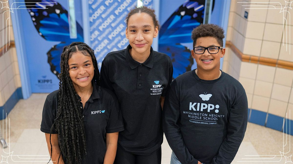 KIPP Washington Heights Middle School (Grades 5–8) is a close-knit, college-focused community that nurtures curiosity, identity, and confidence. Through rigorous, culturally responsive instruction and individualized supports, students develop critical thinking skills and self-advocacy. Our butterfly logo honors Las Mariposas—the Mirabal Sisters—and reminds us that transformation, courage, and leadership are at the heart of our work.