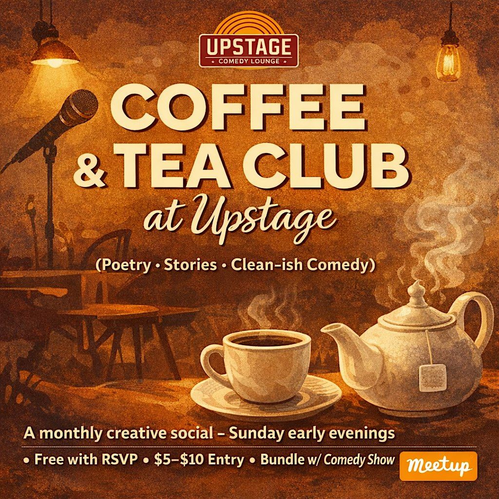 Welcome to Coffee & Tea Club at Upstage — a monthly creative social where the community comes together for poetry, storytelling, and clean-ish comedy in a relaxed, supportive vibe.