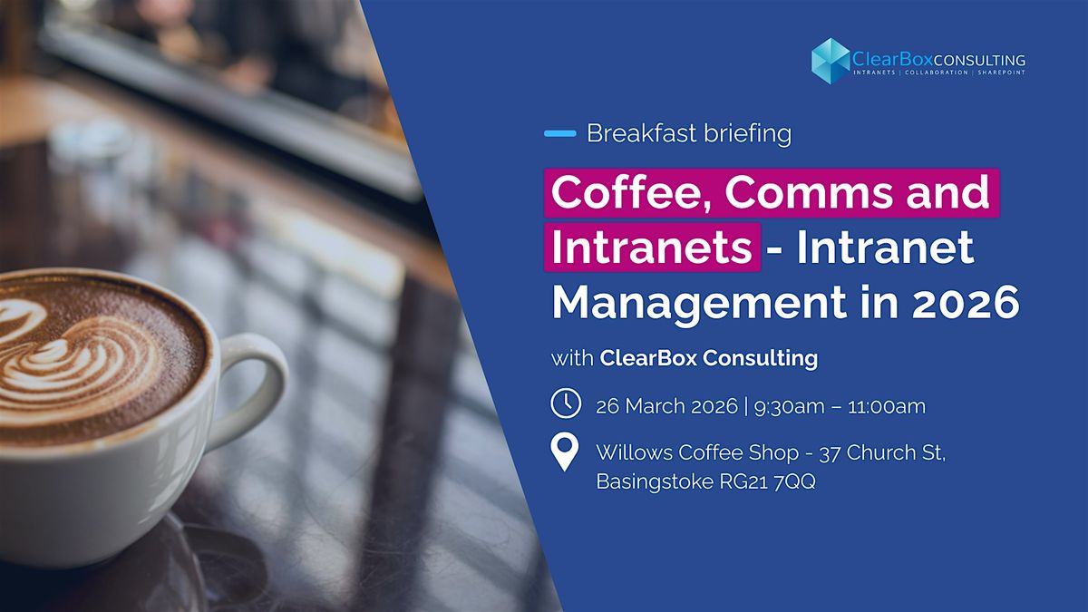 Hosted by ClearBox’s Suzie Robinson at Willows Coffee Shop in Basingstoke, this small, conversation-led session will explore what intranet management really looks like in 2026 - the pressures teams face, common pitfalls ClearBox sees across organisations, and where technology is genuinely helping (and where it isn’t).