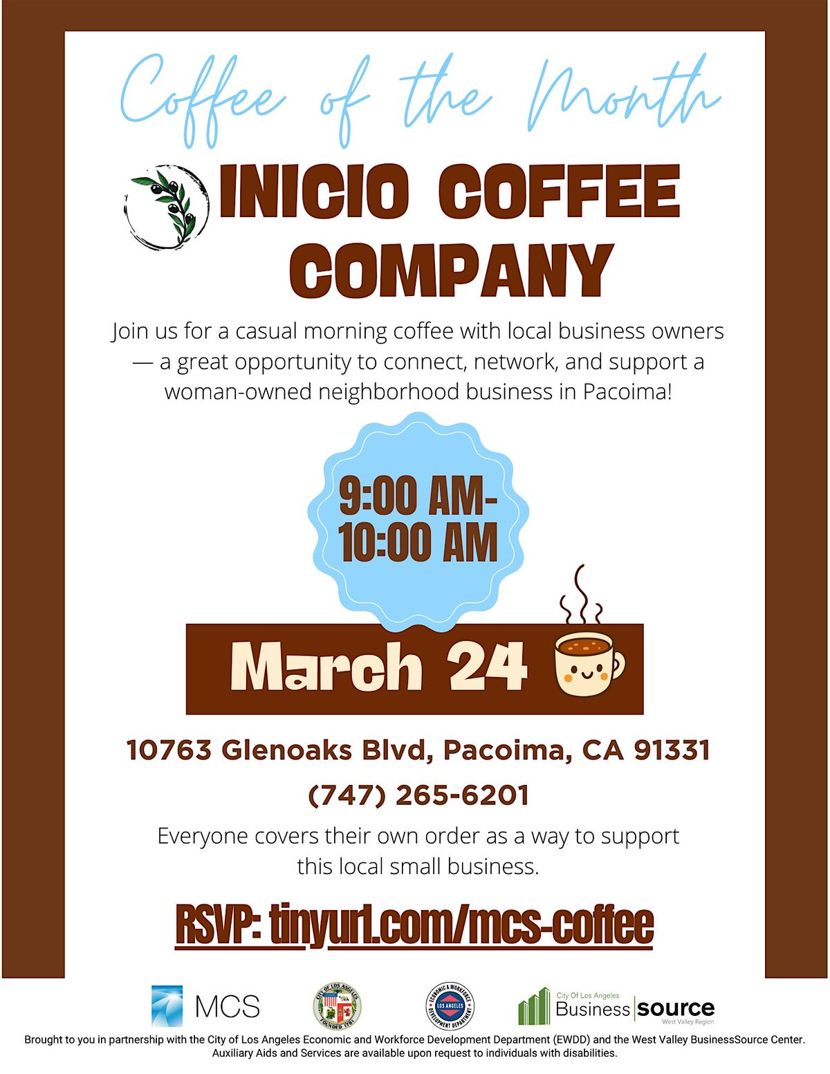 Join us for a casual morning coffee with local business owners — a great opportunity to connect, network, and support a woman-owned neighborhood business in Pacoima!