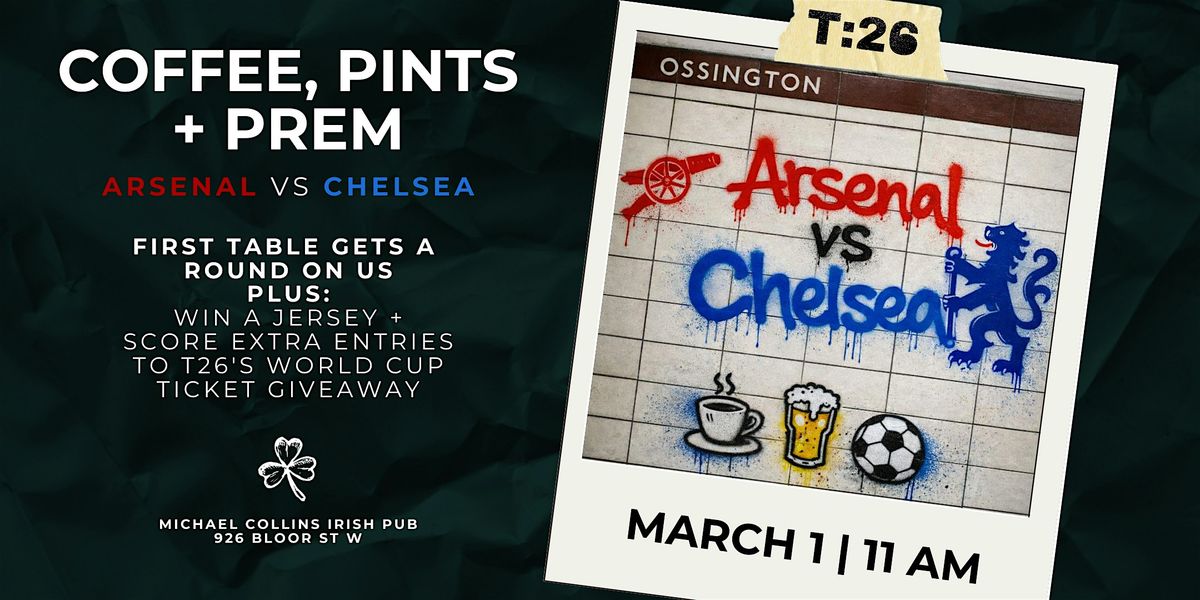 On March 1 at 11 AM, Toronto26 is bringing Arsenal vs Chelsea to Michael Collins Irish Pub (926 Bloor St W) for a proper Premier League morning in Ossington.
