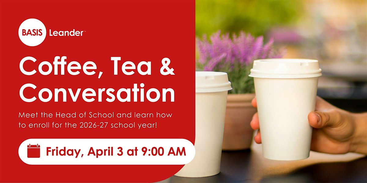 Join us for a casual coffee, tea, and conversation with BASIS Leander’s Head of School on Friday, April 3rd at 9:00 a.m.
