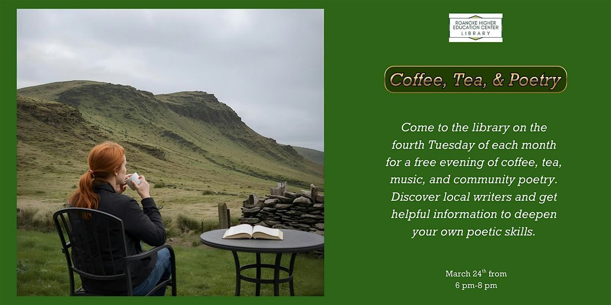 Join our free club, where local poets will share their work in a safe, judgment-free space. Coffee, tea, and light snacks will be provided. Information will also be provided to help poets expand their knowledge. Each poet should bring at least five poems to choose from in case we have enough time to get around to each person more than once. If you do not have any poems of your own there will be poetry books provided you can choose from, or pick online from some of your favorite poets to read. Information will also be provided to help poets expand their knowledge.