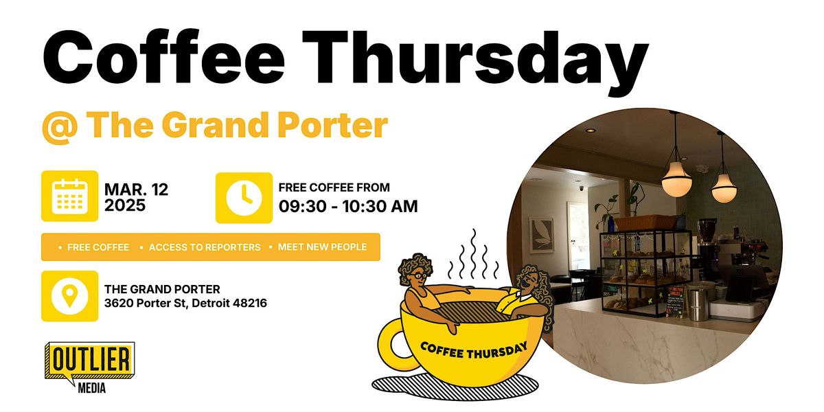 Hey! We're , a nonprofit newsroom that centers the voices of Detroiters. We invite you to join us for Coffee Thursday — we'll buy you a coffee (or tea) and you get the chance to chat with Outlier staff about what's happening in your neighborhood.