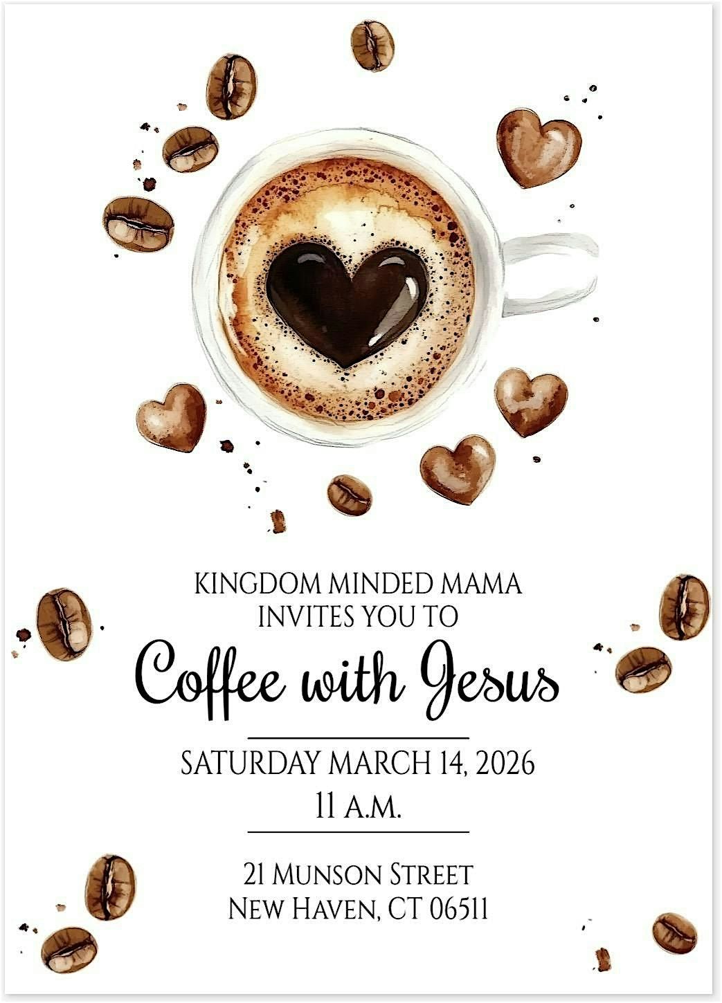 Intimate coffee gathering with a short devotion, coffee bar, sweet treats, and intentional time in Jesus’ presence.