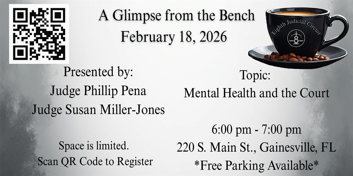 Informal, free, and interactive session with Judges Miller-Jones and Pena exploring the intersection of mental health and the courts.About this Event