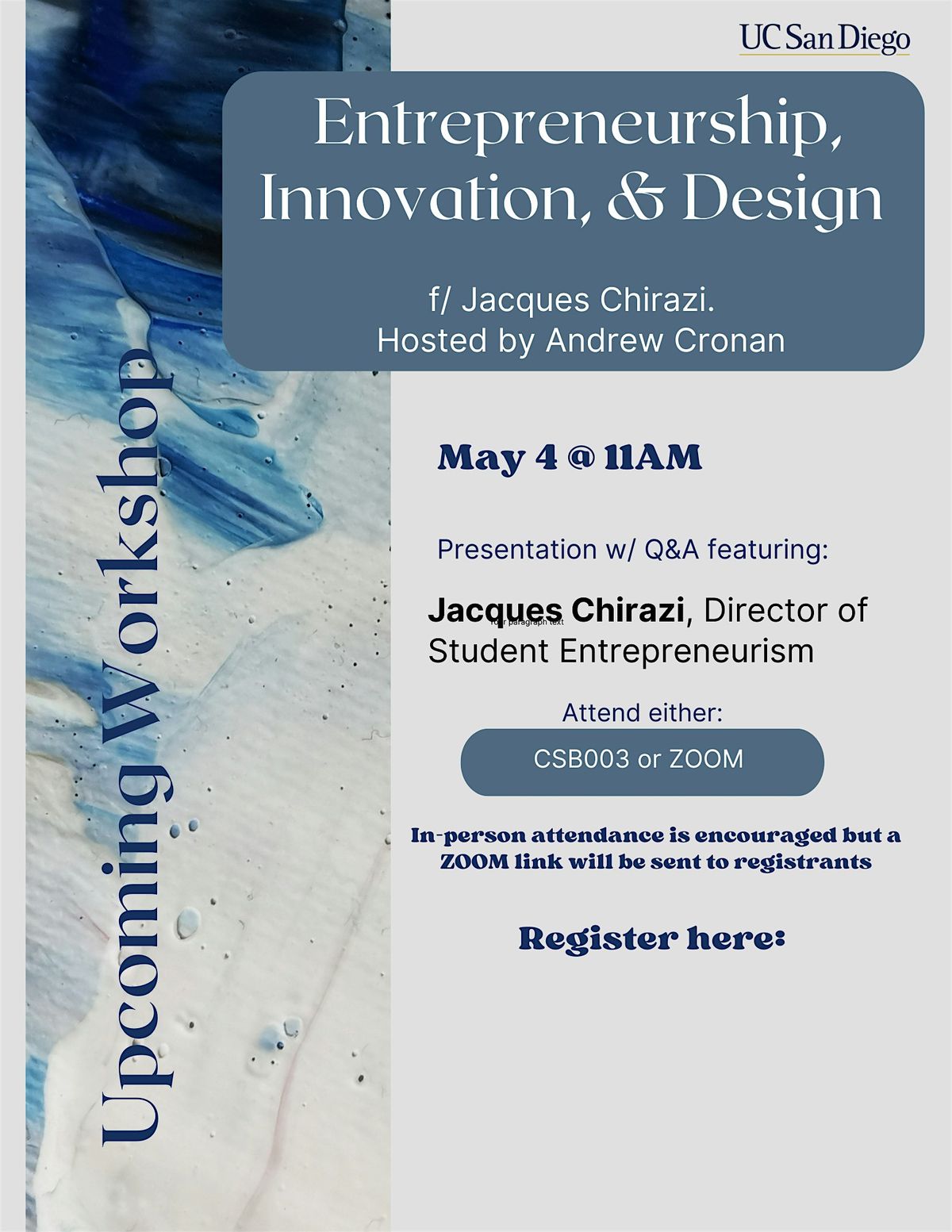featuring Jacques Chirazi, Director of Student EntrepreneurismAbout this Event