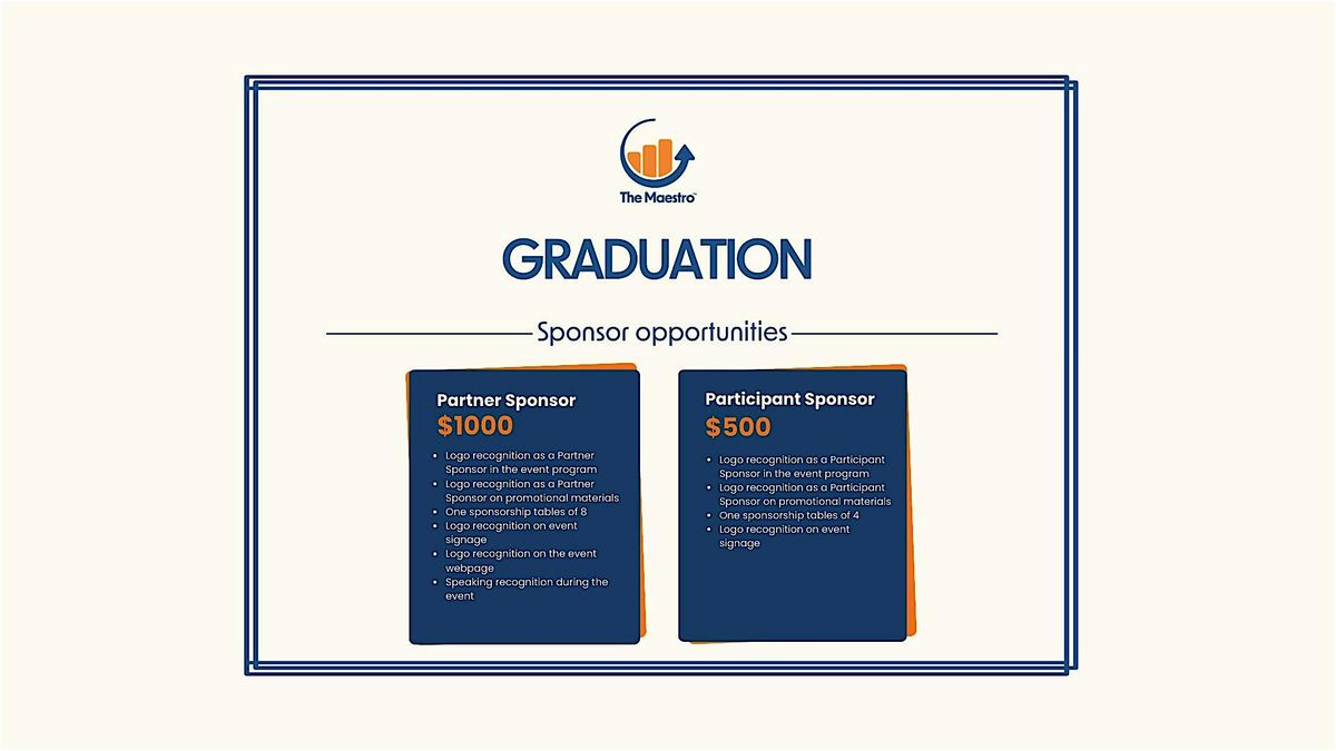 We are proud to invite you to our Graduation Celebration honoring the participants of all three Maestro programs. This special evening will bring together our cohorts, their families, board members, and staff to celebrate the hard work and dedication demonstrated throughout the program. Guests will have the opportunity to hear participant stories, recognize their growth, and witness the impact these entrepreneurs are making in our community.