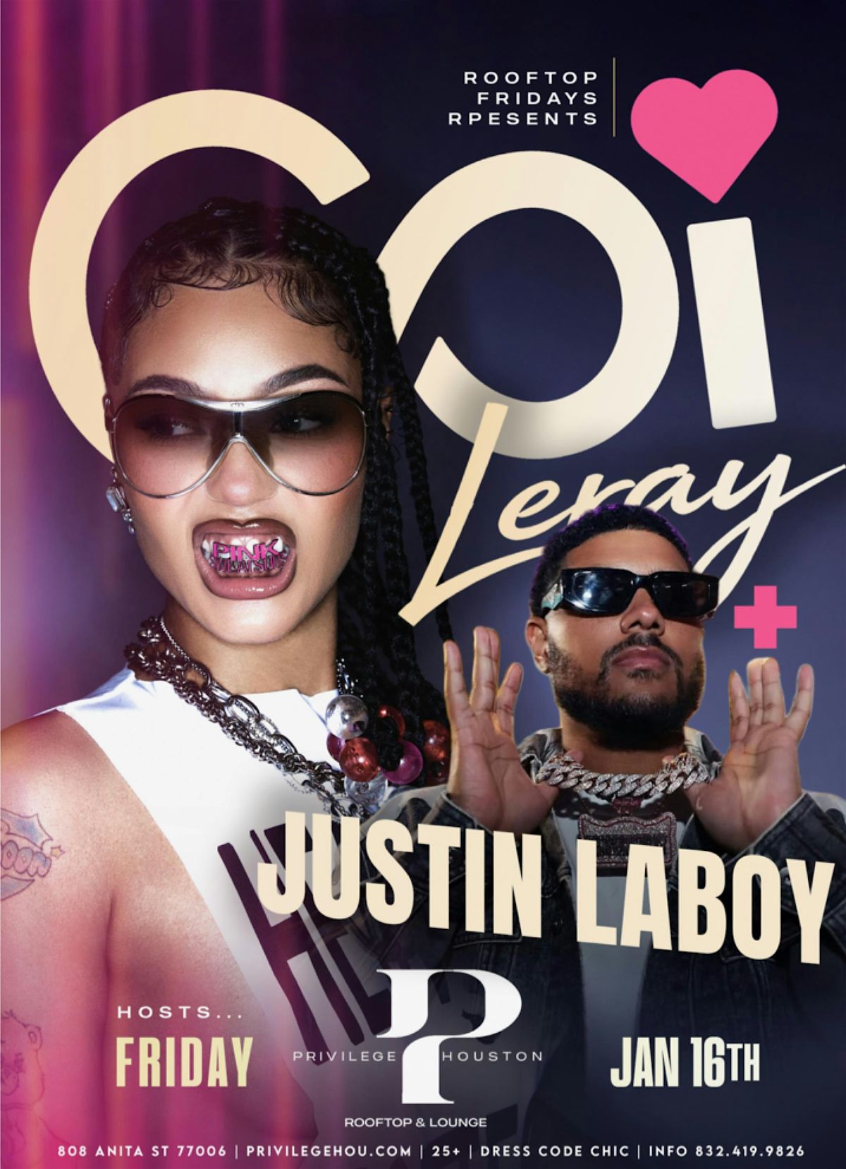 Start the year off BIG as Coi Leray and Justin LaBoy pull up for an exclusive night of music, culture, and elite nightlife energy. Expect viral moments, nonstop vibes, and a packed house for this one.