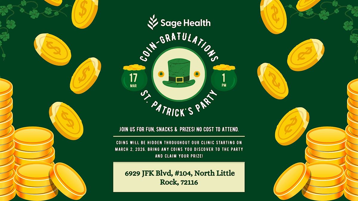 Join us on March 17, 2026, at 1:00 PM (Central Time) for a fun and festive celebration at Sage Health North Little Rock. Come enjoy the festivities and get into the St. Patrick's Day spirit with us.