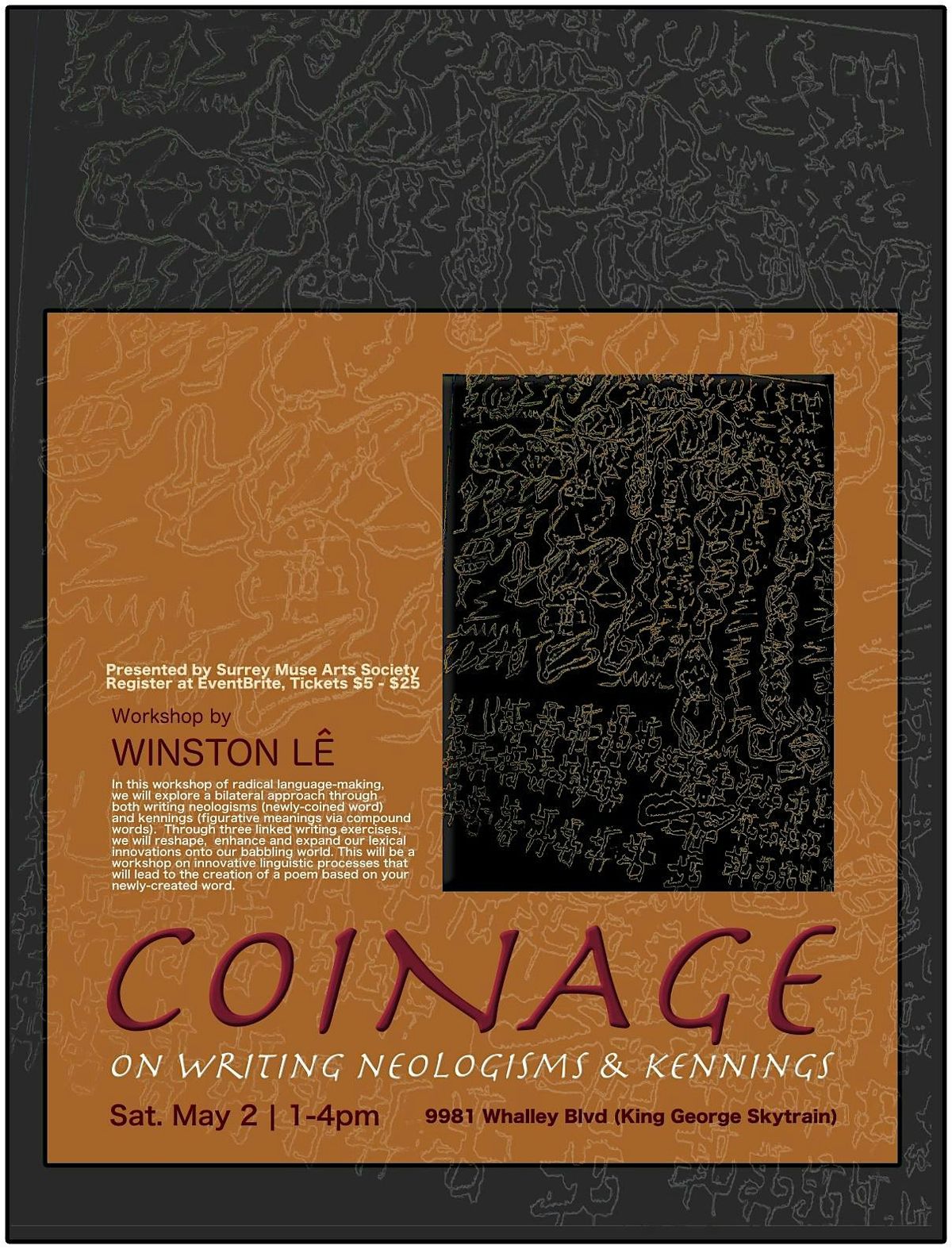 In this workshop of radical language-making, we will explore a bilateral approach through both writing neologisms (newly-coined word) and kennings (figurative meanings via compound words). Through three linked writing exercises, we will reshape, enhance and expand our lexical innovations onto our babbling world. This will be a workshop on innovative linguistic processes that will lead to the creation of a poem based on your newly-created word.