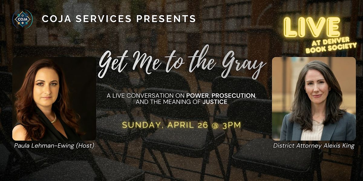 Join COJA Services Inc. in person at Denver Book Society for a rigorous conversation with District Attorney Alexis King of Colorado's First Judicial District. Get Me to the Gray is a space for people who want to sit with the real tension. This is a live podcast formatted as an unscripted conversation grounded in experience, skepticism, and intellectual honesty.