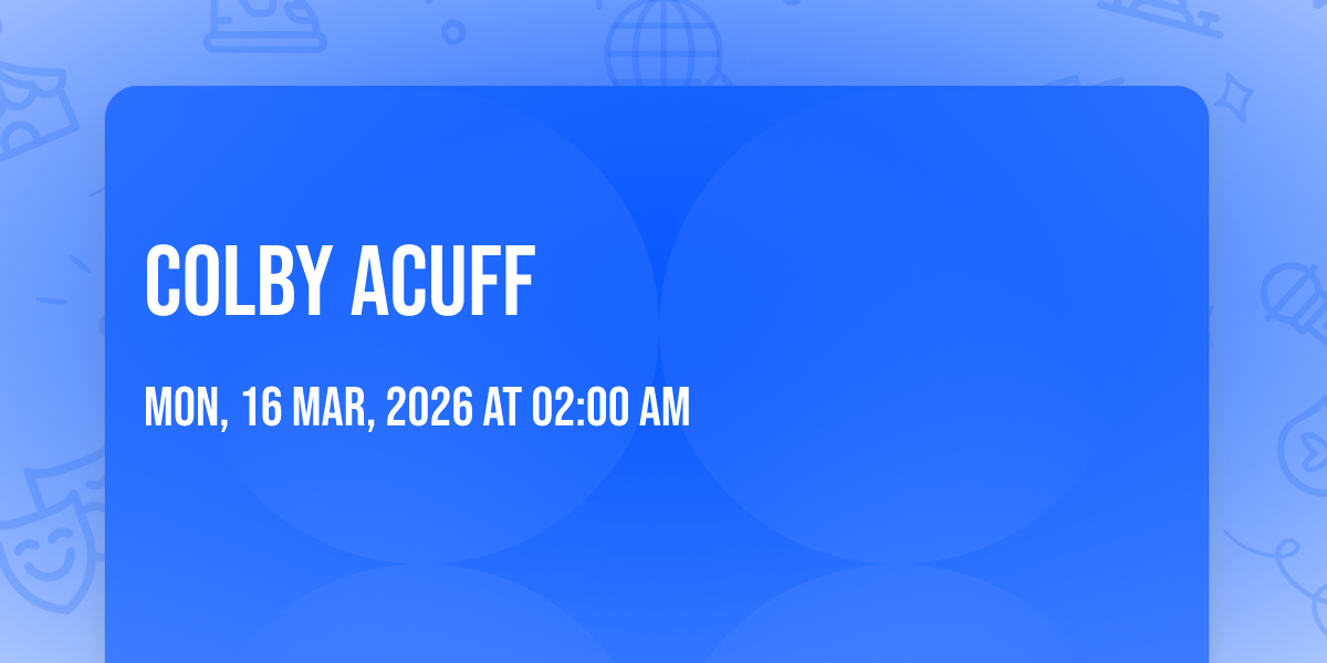 ? Location: 47.6139, -122.32? Welcome to Colby Acuff, where the impossible becomes possible and dreams take flight! ?️ Join us at Neumos in the heart of Seattle, WA for an event that will redefine your expectations. ? On March 16th, 2026 at 02:00 AM, witness the transformation of space and time into something truly magical. ✨ It's a curated experience combining the best of innovation, entertainment, and community spirit, creating moments that will be remembered for years to come. Whether you're a first-time visitor or a seasoned enthusiast, prepare to be amazed. ? Book now to ensure your place in this unforgettable experience!