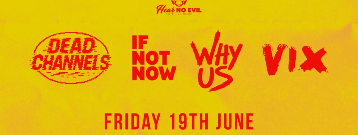 TWM Live presents Colchester’s Biggest Alt Showcase, live at Three Wise Monkeys, Colchester, featuring If Not Now, Dead Channels, Why Us and Vix.Bringing together some of the most exciting alternative acts in the local scene, this showcase highlights a diverse mix of emerging talent. Date: Friday, 19 JuneVenue: Three Wise Monkeys, ColchesterTickets: £7.50Doors: 7:30pmAges: 18+Please note that access to the top floor of Three Wise Monkeys does not have a lift, but there are rest opportunities between each flight of stairs.Viewer discretion is advised: This show may potentially contain flashing and strobing lighting effects.Refund policy: We are unable to process any ticket refunds within 7 days of the event.