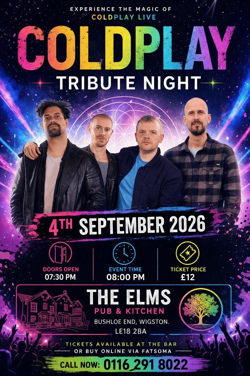 🔥 LIVE AT THE ELMS PUB & KITCHEN – WIGSTON! 🔥Get ready for an unforgettable night as we bring you a spectacular Coldplay Tribute Night at one of Wigston’s favourite venues – The Elms Pub & Kitchen!