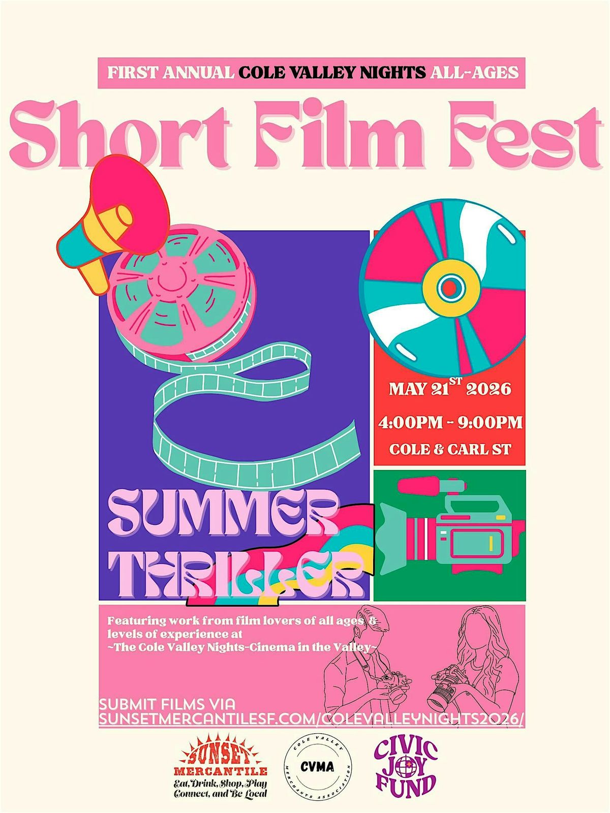 We are thrilled to announce the launch on the first annual Cole Valley All-Ages Short Film Fest at the May 21st Cole Valley Nights Cinema in the Valley.