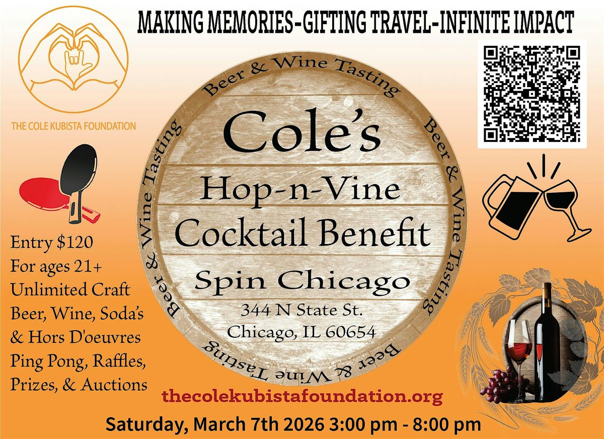Join The Cole Kubista Foundation at on Saturday March 7st, 2026 for an amazing evening that seamlessly blends the artistry of craft beers, sensationable wines, delectable appetizers, and the energetic thrill of ping pong—all in the name of a great cause. *Discounted Hotel Chicago room rates & discounted valet right infront of House of Blues*