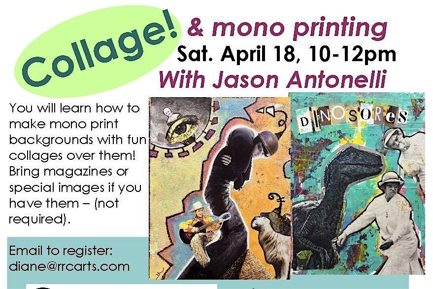 You will lean how to make mono print backgrounds with fun collages over them! Bring magazines or special images but not required.