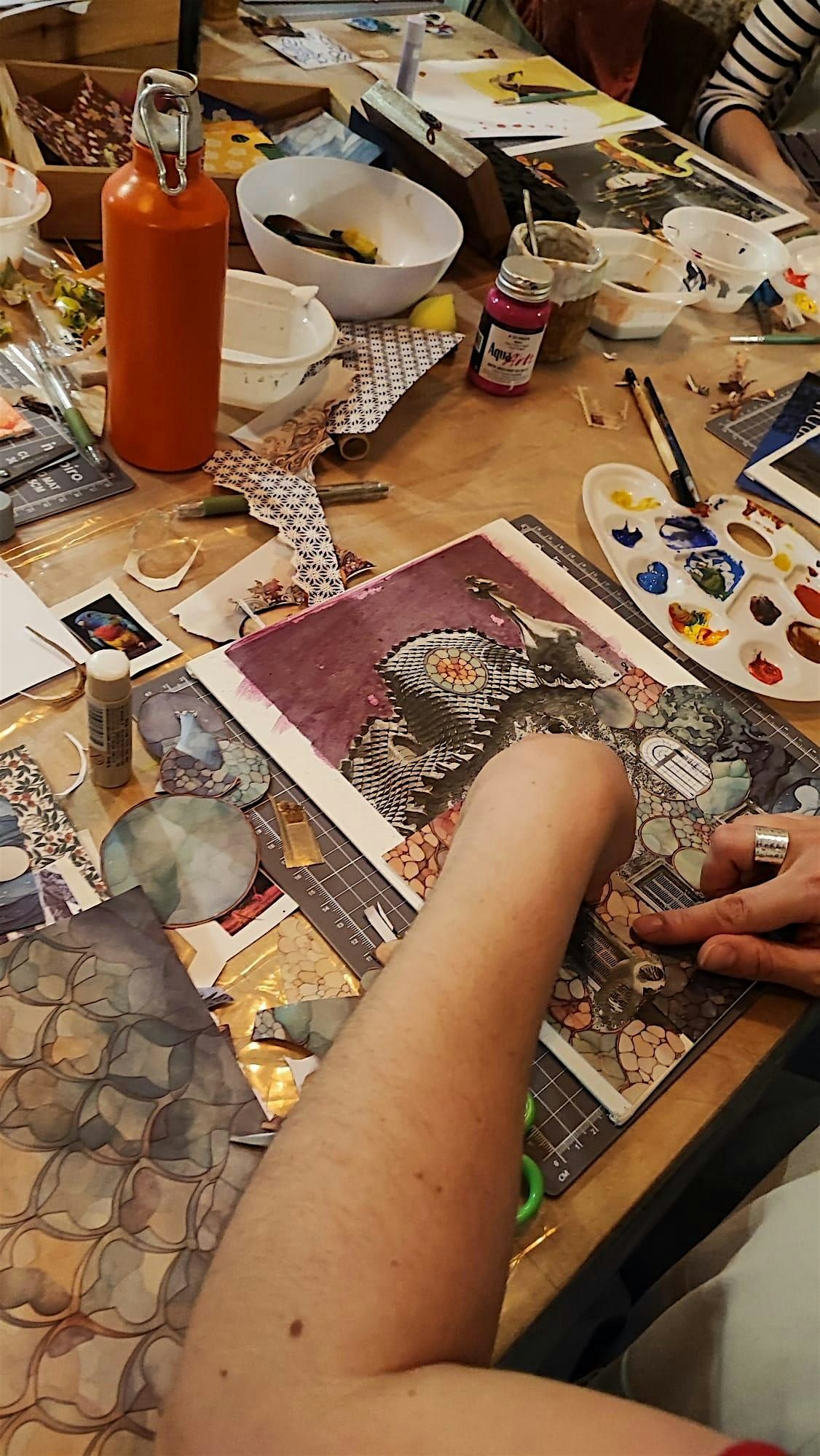 A relaxed art experience where you can disconnect, explore collage techniques and create your own artwork to take home.