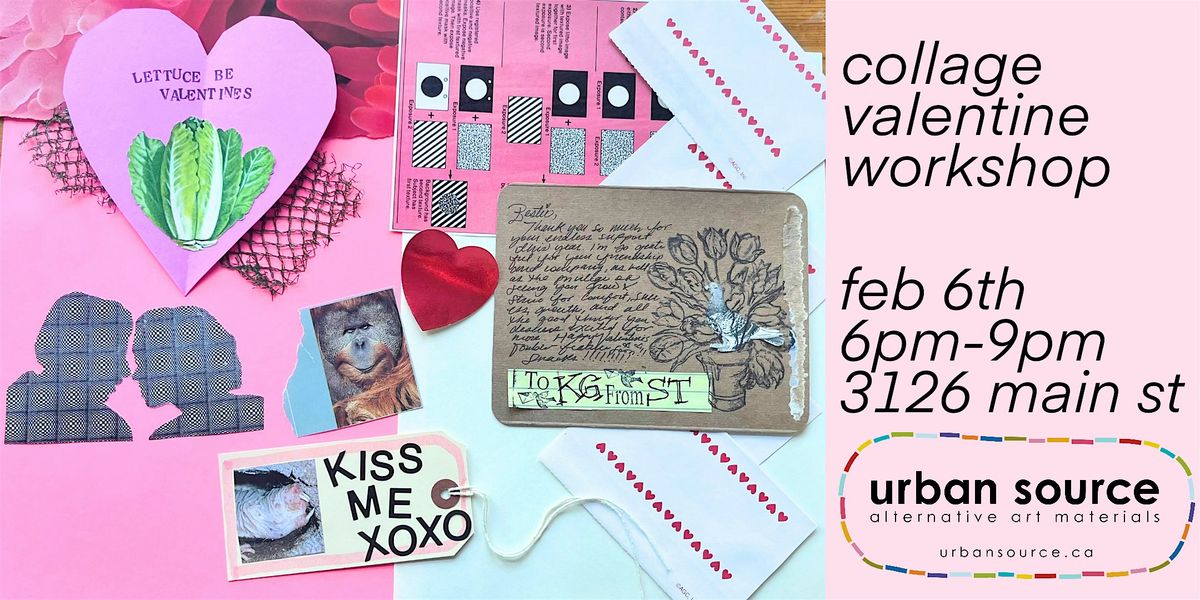 Come use our large collection of offbeat and vintage materials to collage valentines for your friends, lovers, and neighbours. Begin by learning different styles of valentine-making and then simply follow your heart!