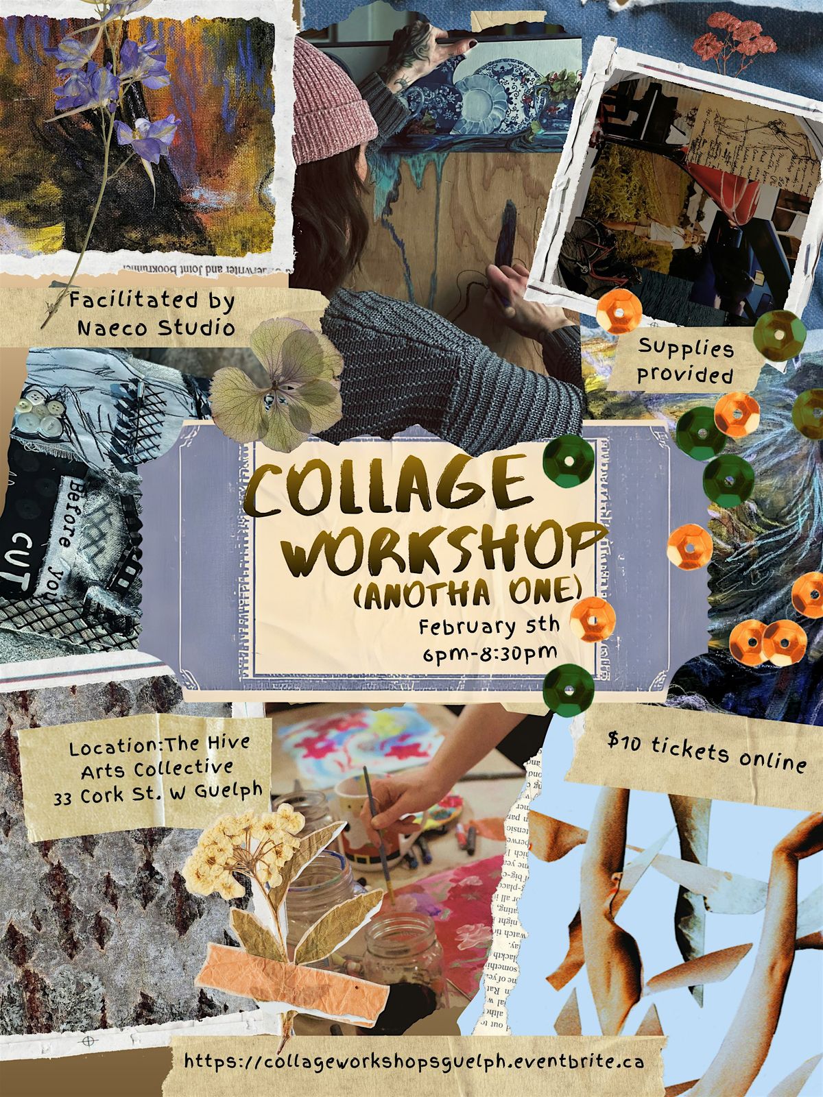 This Collage Workshop invites participants to re-imagine the art of collage through a lesson on layering, meaning, and expression. Naeco Studio (Jess) will guide you through the collage process to elevate your project's creative expression.