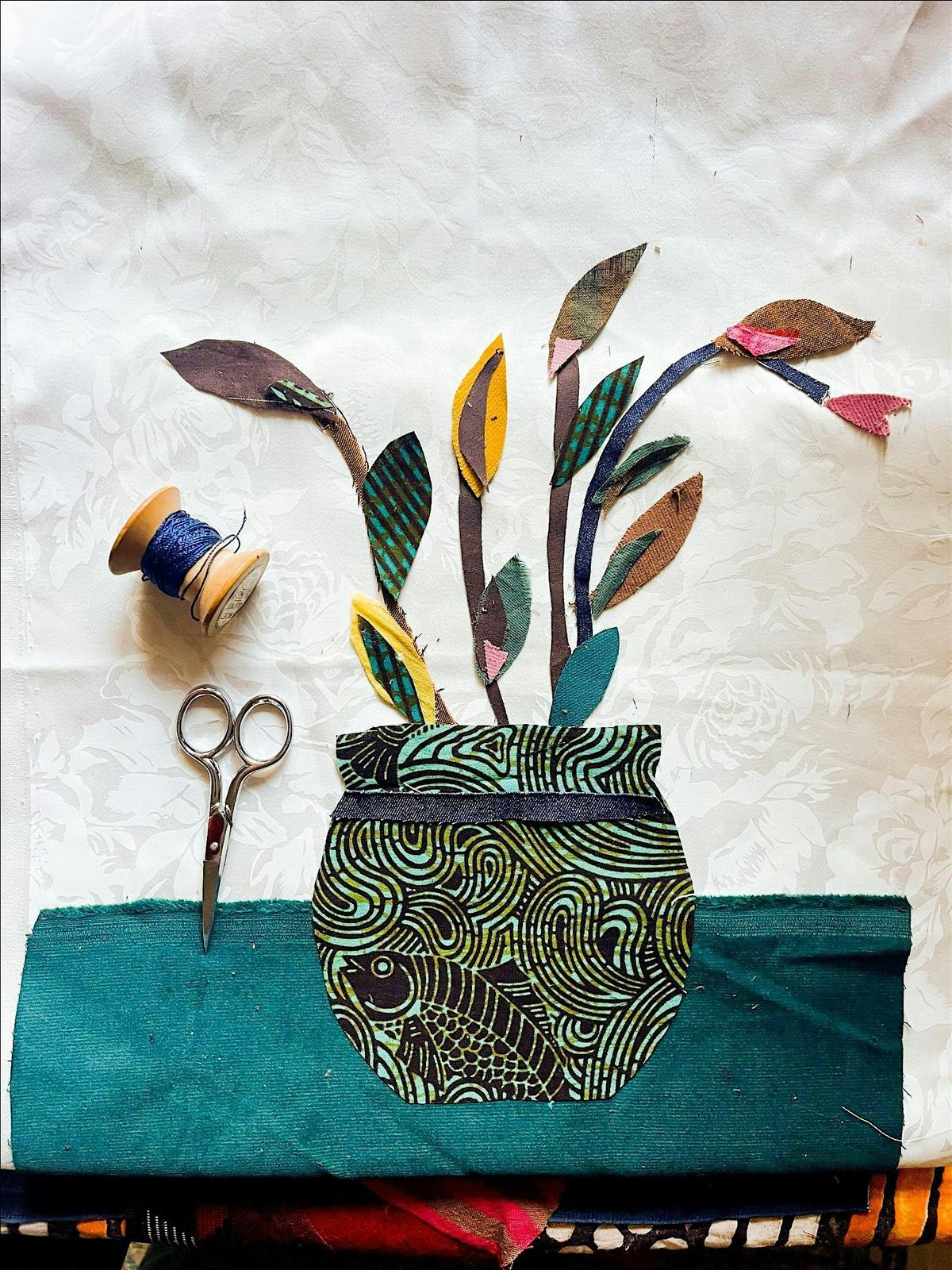 Play around with natural fabrics to create your still-life collage using hand and machine sewing.