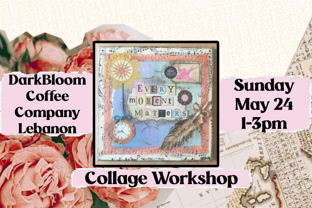 Get creative and have fun at the Darkbloom Coffee Company in Lebanon. This Workshop is all about exploring the art of collage in a relaxed and fun setting. No experience needed! All Materials are provided, however if you have anything you would like to include in your Collage please feel free to bring it with you! We will have lots of interesting Papers ( Vintage & New ), Embellishments and ephemera as well as magazines, ribbon, Lettering, stickers and so much more! Personalize it exactly how you want it and let your inspiration flow!