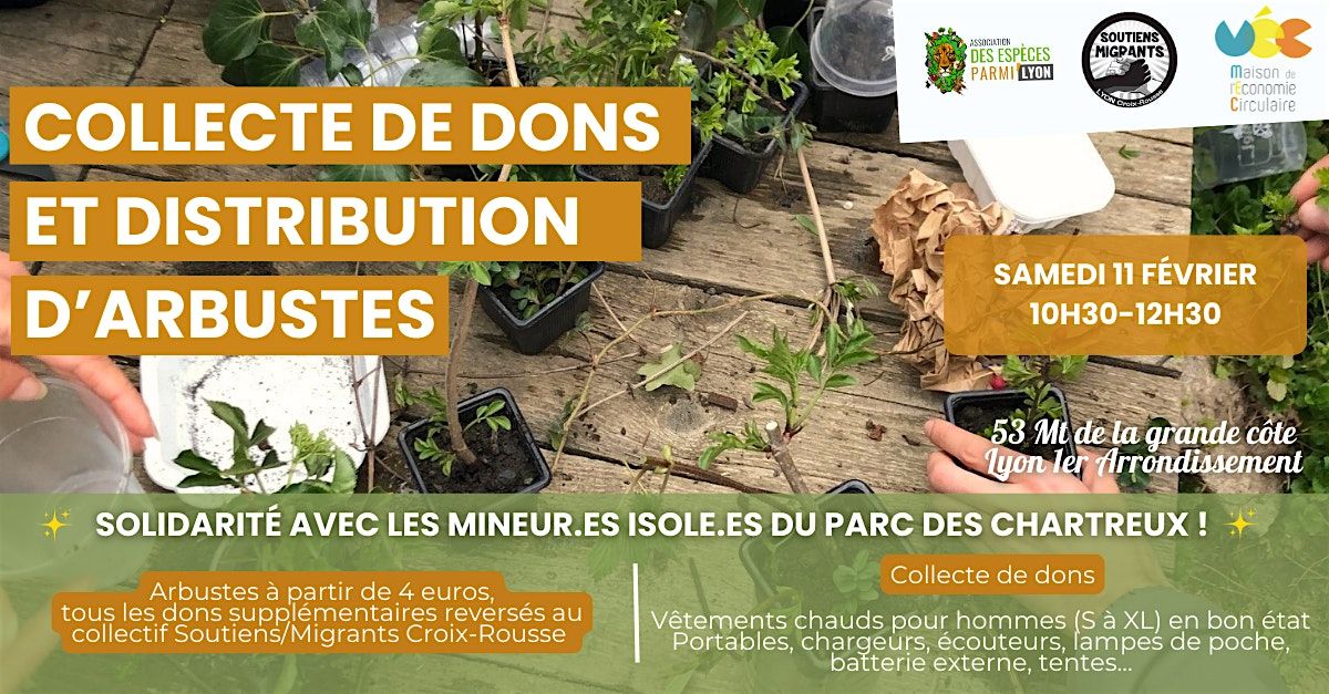 On recueillera ce jour-là des dons pour les aider : bouillottes à eau, couvertures, portables, etc. La liste complète sur la page fb et insta du collectif Soutiens / Migrants Croix-Rousse.
