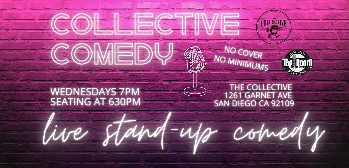 Stand-Up Comedy. The Collective PB. No cover. No minimums. Dog friendly. Fresh lineup every Wed. Doors 630pm. Show 7pm. Happy Hour 630-830.About this Event