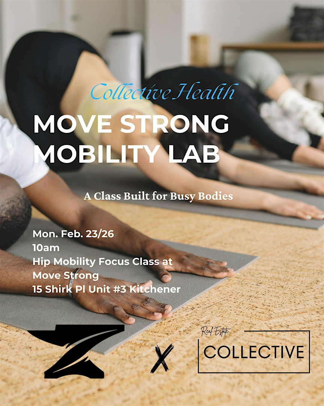 Join us for a Move Strong Mobility Lab, a guided mobility session designed to help you move better, feel better, and stay strong through busy seasons of life and business. Expect hip focused mobility work, stretching, and functional movement focused on improving range of motion, reducing tightness, and supporting long-term performance.