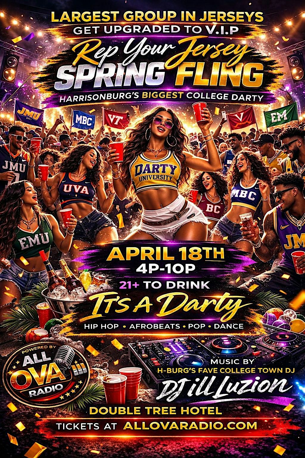 Join us in person for the ultimate day party experience! Whether you want to chill with friends, dance to awesome beats, or just soak up the good vibes, this is the place to be. Don't miss out on the fun, laughs, and memories waiting for you. Grab your crew and come party with us at SPRING FLING COLLEGE DAY PARTY – it’s gonna be lit!