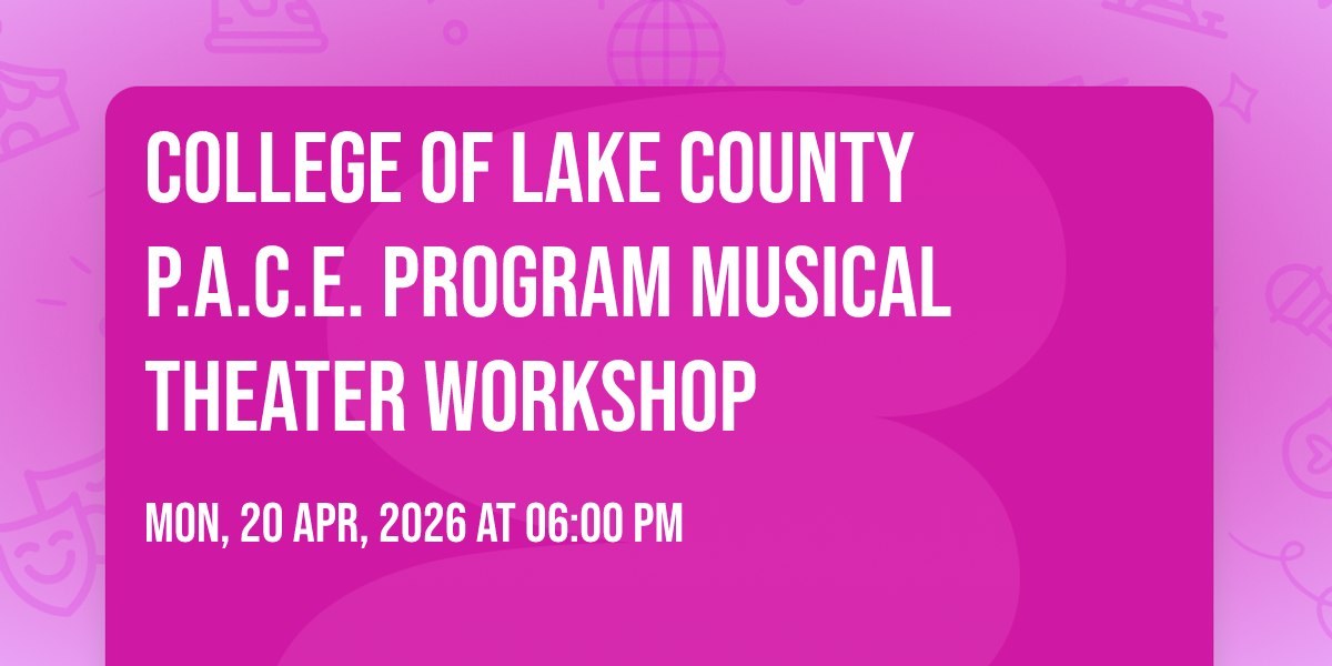 Join the College of Lake County's Performing Arts Community Engagement (P.A.C.E.) program for a Musical Theater Workshop led by CLC Dance faculty and PACE program coordinator Dr. Lamaiya Lancaster, Theatre faculty Mario Mazzetti, and recording artist/vocal instructor Charity Noel