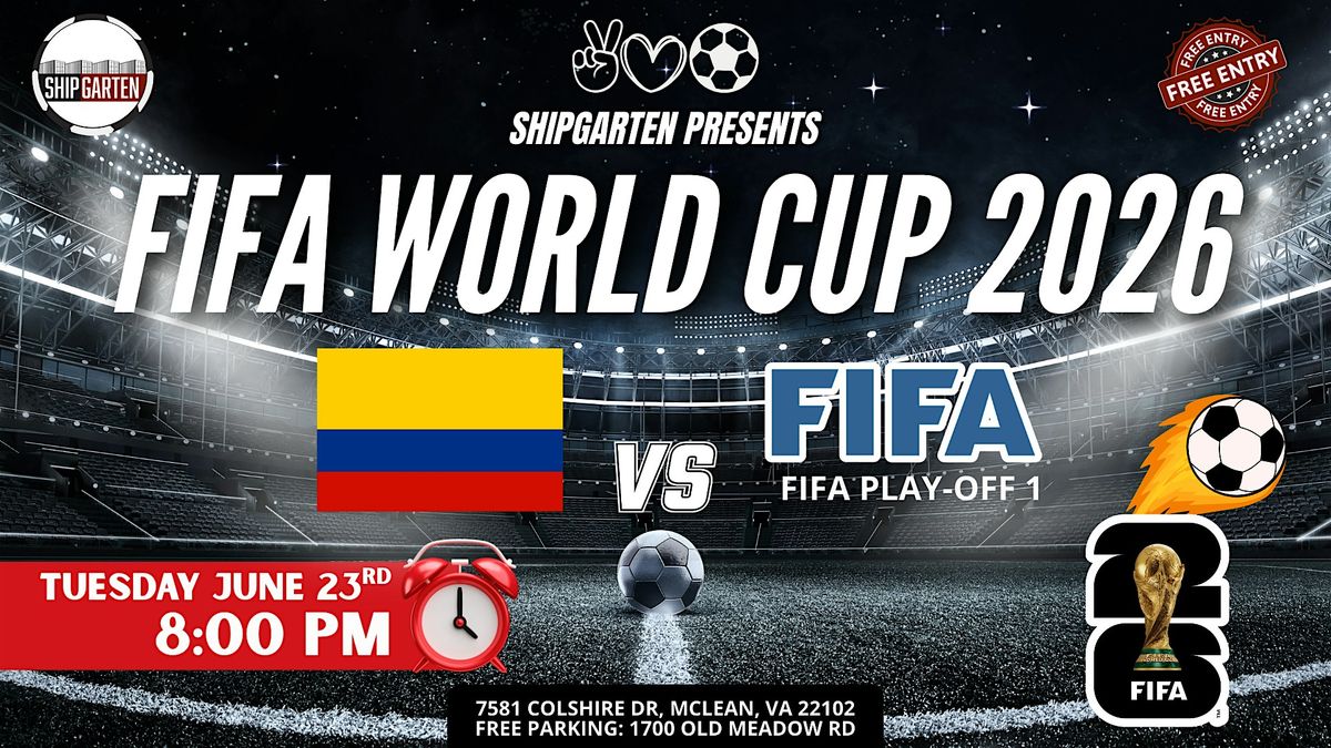TUESDAY NIGHT UNDER THE LIGHTS. Colombia brings flair, rhythm, and attacking creativity. The Play-Off contender comes hungry, desperate, and with everything to prove. 8PM kickoff.Prime night energy. Shipgarten becomes the biggest World Cup watch party in Tysons. THIS IS HOW YOU DO A TUESDAY NIGHT MATCH You leave work early. You grab your crew. You lock in for kickoff. Massive screens & stadium-level sound $40 Mix & Match Beer Buckets (5 – 16oz cans) 100+ beer varieties available All ages welcome (21+ to drink) The most energetic World Cup crowd in Tysons This isn’t background noise. It’s full matchday energy. SKILL. PASSION. PRESSURE. Colombia’s speed and creativity. A Play-Off team fighting for their tournament life. Night games hit different. The crowd gets louder. Every goal feels bigger. Come early. Stay loud. Celebrate big. GAME DAY DETAILS Tuesday, June 23rd Kickoff: 8:00 PM Shipgarten – 7581 Colshire Dr, McLean, VA 22102 FREE & large parking at 1700 Old Meadow Rd FREE ENTRY – Pay only for what you consume Coming with your crew? Upgrade your match day. The biggest crowd. The coldest beer. The loudest World Cup in Tysons.