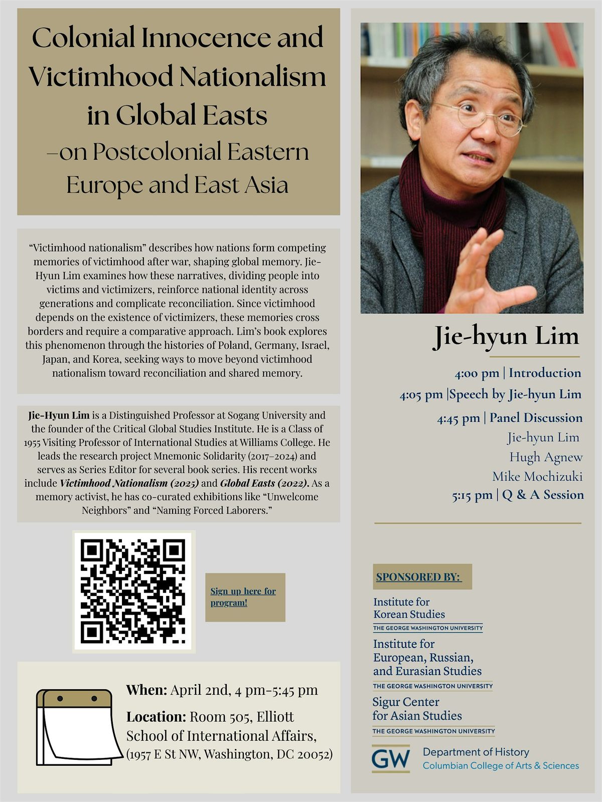 Info: Speech by Professor Jie-hyun Lim: "Colonial Innocence and Victimhood Nationalism in Global Easts-on Postcolonial Eastern Europe and East Asia."
