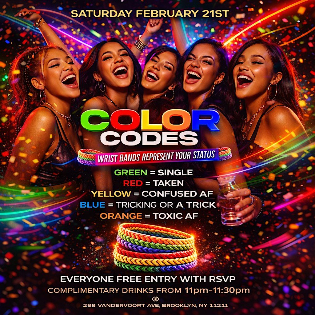 Color Codes Saturday at Polygon Brooklyn is a grown & sexy nightlife experience where color-coded wristbands represent your status—single, taken, confused, or toxic. Enjoy a high-energy crowd, great music, and a packed dance floor at one of Williamsburg’s hottest venues. Everyone gets free entry with RSVP, plus complimentary drinks from 11:00–11:30PM. Dress to impress, grab your wristband, and let the colors do the talking.