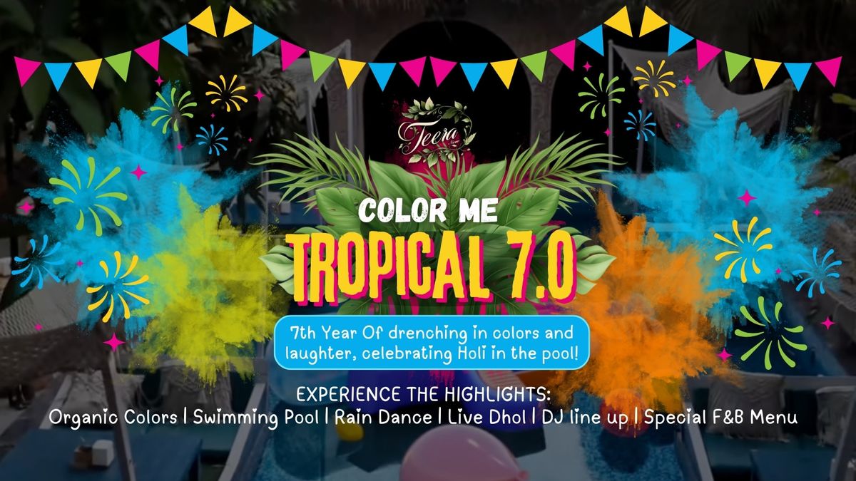 Teera’s iconic Holi celebration returns with Color Me Tropical 7.0, a high-energy poolside experience crafted for a full day of colour, music, and festive celebration.Designed to bring together vibrant visuals, immersive music, and lively Holi traditions, the experience blends classic festive elements with a tropical, poolside vibe.Event Highlights:• Organic colours• Swimming pool access• Rain dance experience• Live dhol performances• Bollywood DJ line-up• Specially curated food and beverage menuNote :• Above 10yrs Adult ticket will be applicable.• Event will be in standing with pool access• Outside colors not allowed• Re-Entry not allowed• Belonging will be at your own risk management won’t be responsible for any loss, lost or Damage.• Kids allowed at your own risk management won’t be responsible.