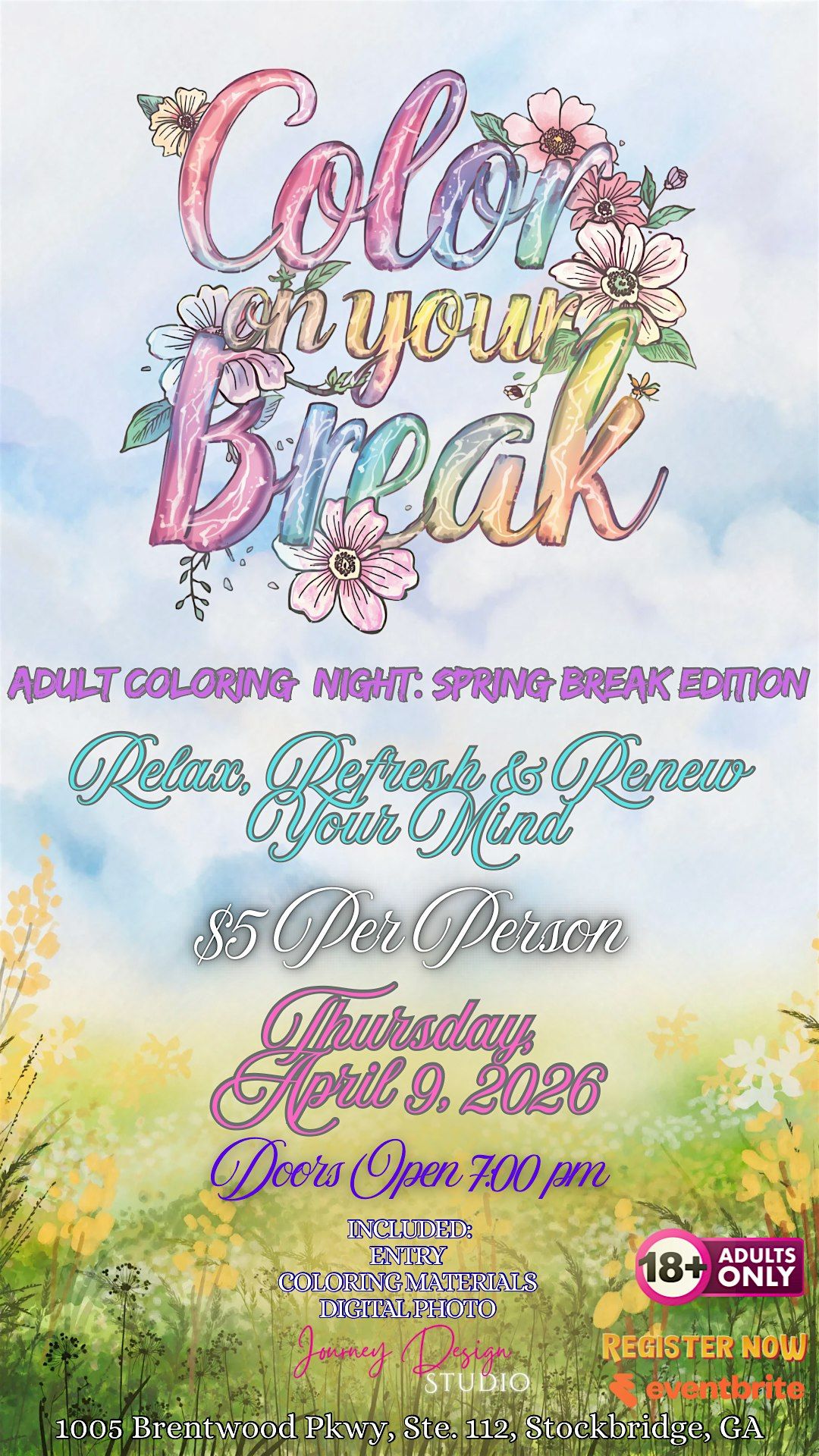 Materials Provided: Color Pencil, Markers, Crayons, & Coloring Sheets. You may also bring your personal materials!