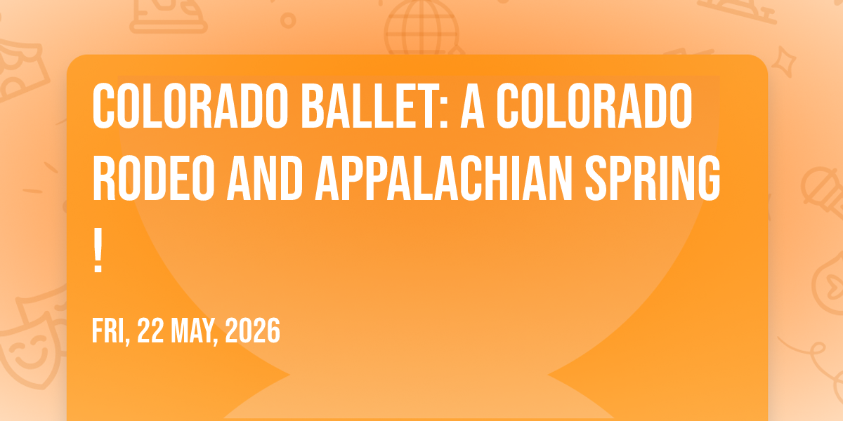 📍 Location: 38.8309, -104.827✨ Enter a world of endless possibilities at Colorado Ballet: A Colorado Rodeo and Appalachian Spring!, where every moment tells a story! 🏛️ The stunning Pikes Peak Center in vibrant Colorado Springs, CO transforms into a realm of wonder on May 22nd, 2026 at 01:00 AM. 🌟 They have crafted an experience that goes beyond the ordinary, combining elements of surprise, delight, and pure entertainment. Every detail has been thoughtfully considered to ensure your journey with us is nothing short of extraordinary. 🎯 Join fellow adventure seekers and memory makers in this celebration of imagination and innovation. 🎊 Reserve your spot today and be part of something truly special!