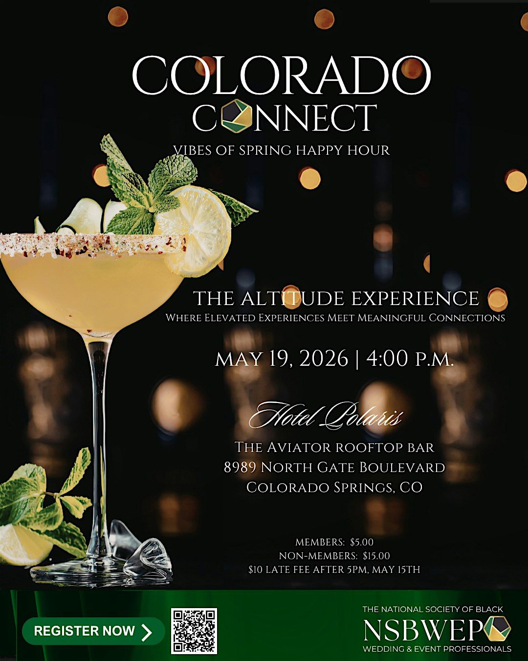 The National Society of Black Wedding and Event Professionals (NSBWEP) wants you to join us in COLORADO SPRINGS for an elevated evening “The Altitude Experience...Where Elevated Experiences Meet Meaningful Connections" an exclusive but inclusive gathering for wedding and event professionals.