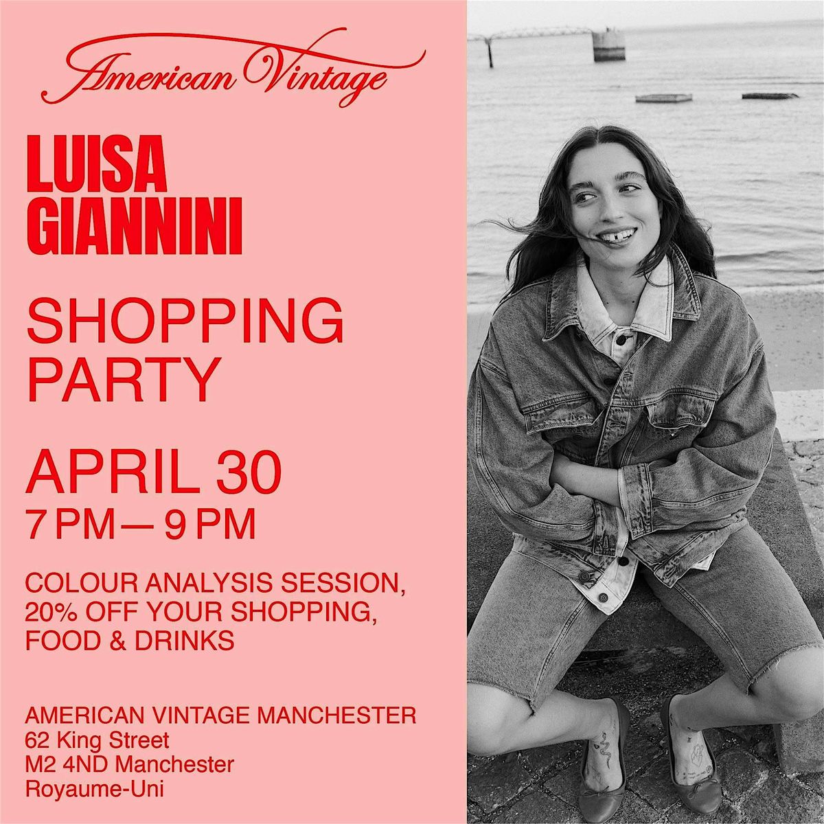 Learn all there is to know about Colour Analysis, disover your colour season through a mini one-to-one session, and refine your wardrobe with the latest pieces from American Vintage with an exclusive 20% discount.