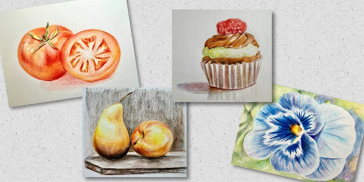 The artwork featured in this listing are examples of Colour Pencil Drawing and are not indicative of the actual course work.