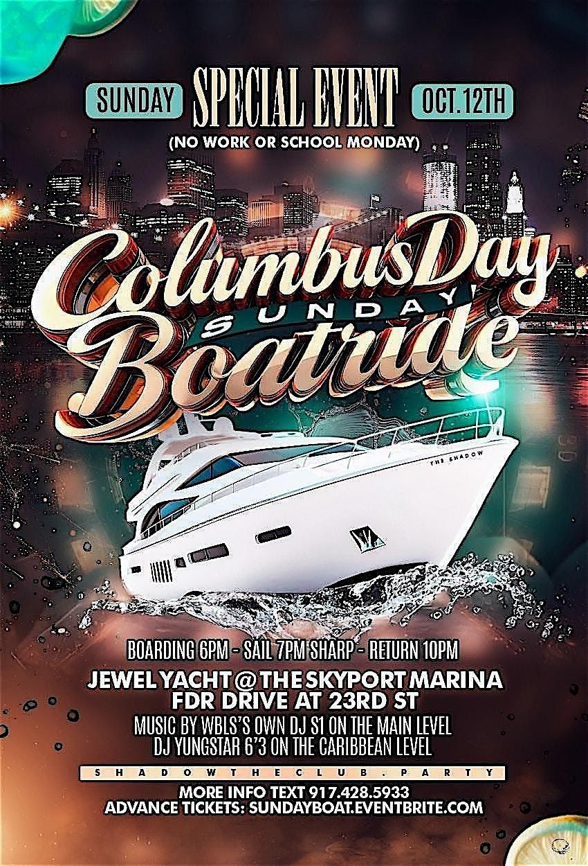 THIS IS IT!! THE BONUS BOATRIDE YOU'VE BEEN WAITING FOR! CELEBRATE COLUMBUS DAY SUNDAY, NO WORK OR SCHOOL MONDAY!. BIRTHDAY PACKAGES ARE AVAILABLE!