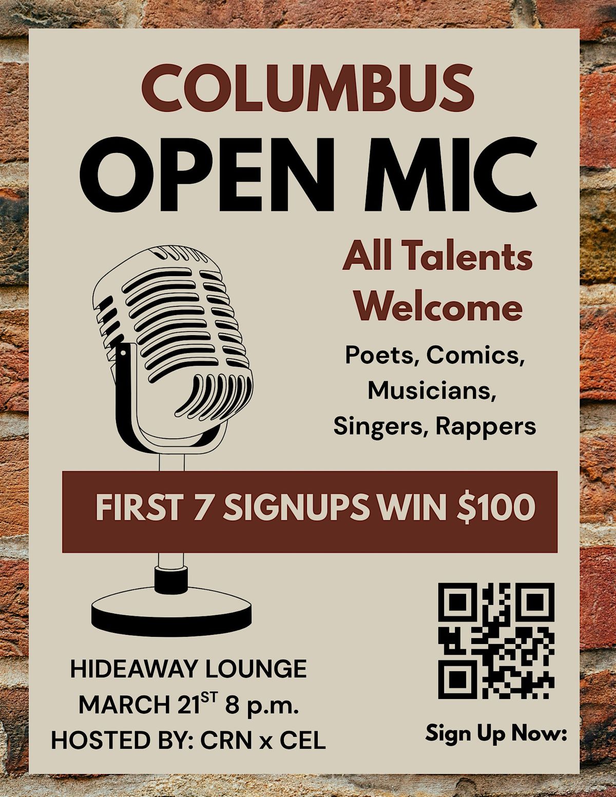 Hey everyone! Join us in person for the Columbus Open Mic!!! — a chill night where local talent takes the stage. Whether you wanna perform or just kick back and enjoy some awesome vibes, this is the spot. Bring your friends, your energy, and be ready for a great time filled with music, laughs, and good company. Can't wait to see you there!
