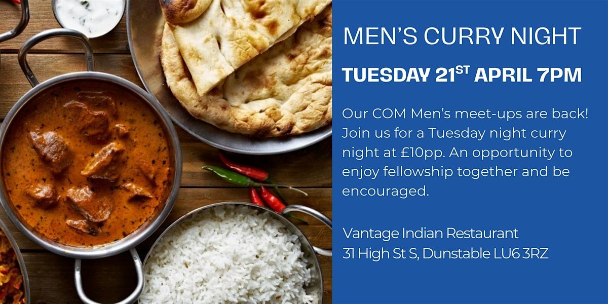 Our COM Men’s meet-ups are back! Join us at Vantage for a curry night. An opportunity to enjoy fellowship together and be encouraged.About this Event