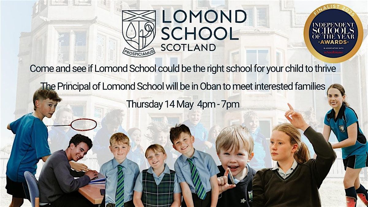 We are delighted to share that our Principal Claire Chisholm as well as our IB Coordinator will be at the Perle Oban Hotel on Thursday 14 May. This is a wonderful opportunity to learn more about Lomond School and meet the team in person.