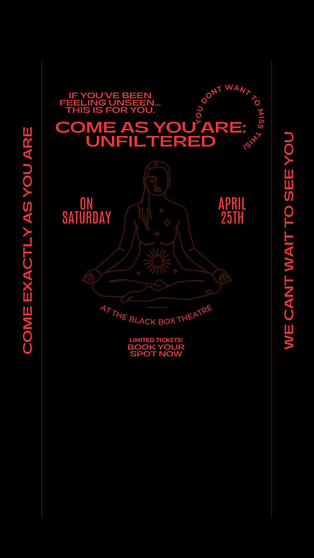 Come As You Are: Unfiltered is an intimate, live experience centered around real stories, mental health, and honest, unfiltered conversation.